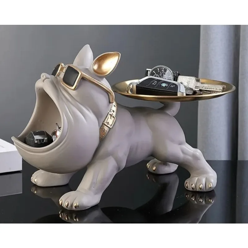 Black Bulldog Storage Decoration Set 1 piece - Stylish resin statue with gold rimmed glasses and dial - Perfect for home