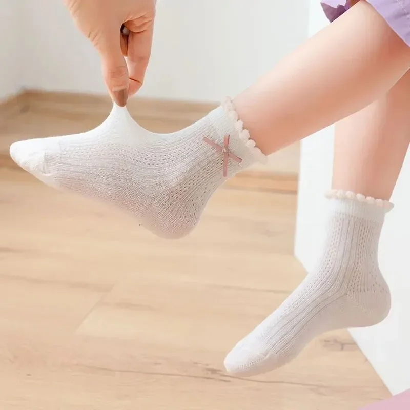 5Pairs/Lot Cute Kids Socks For Girls Boys Cotton Solid Princess Children Sock Casual Summer Mesh Thin Flower Cartoon Socks