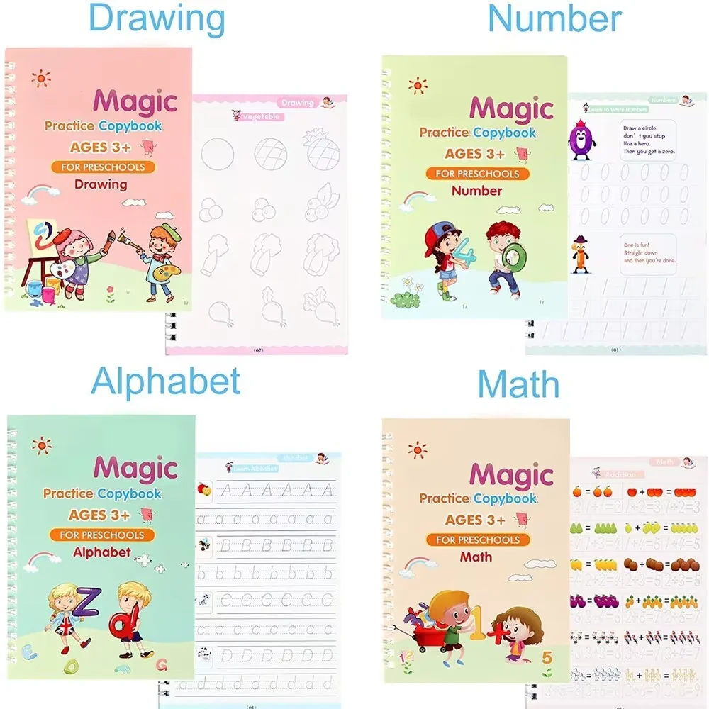 4 Books Pen Magic Writing Book Calligraphy Notebook Montessori Kids Reusable Educational Calligraphic Letter Practice Toy