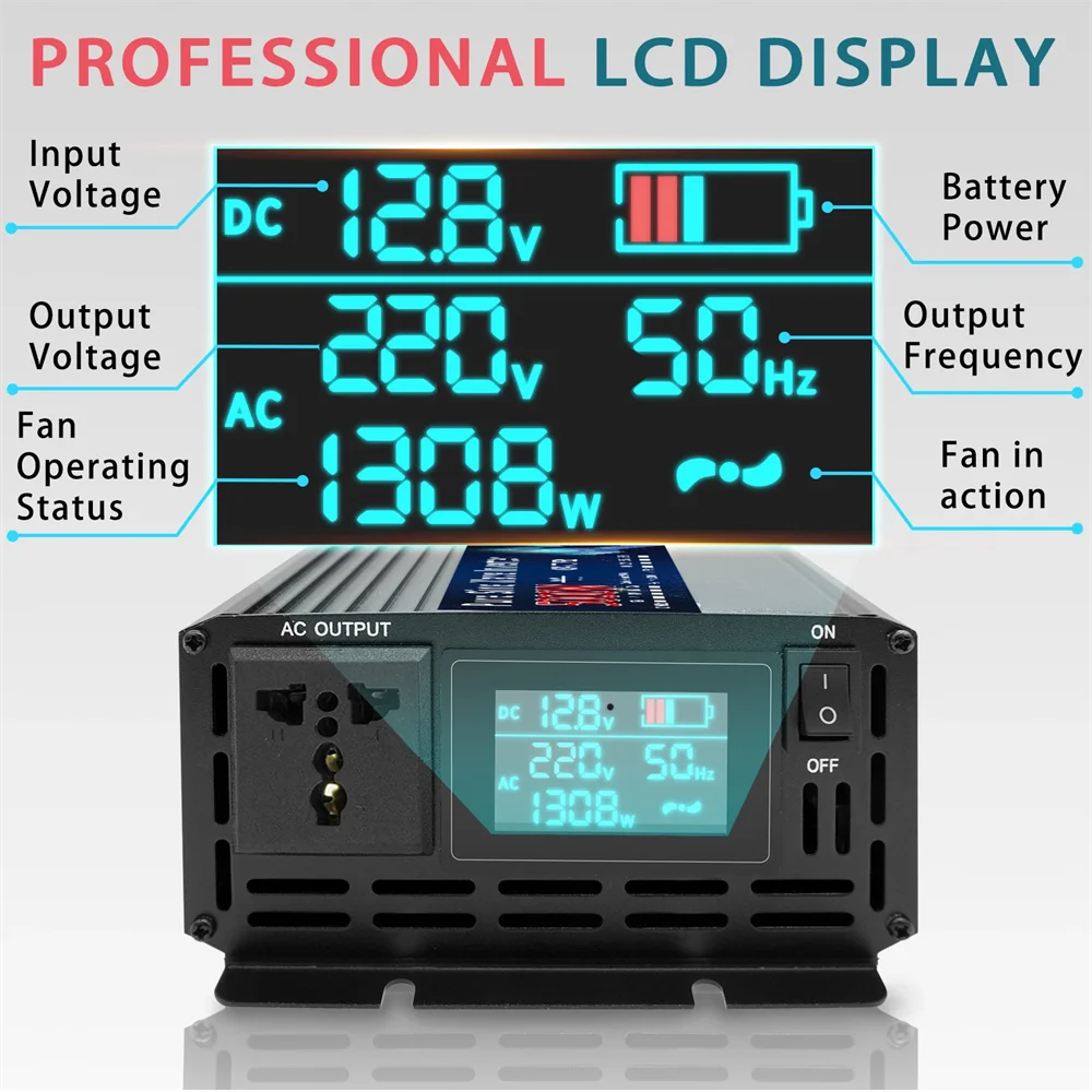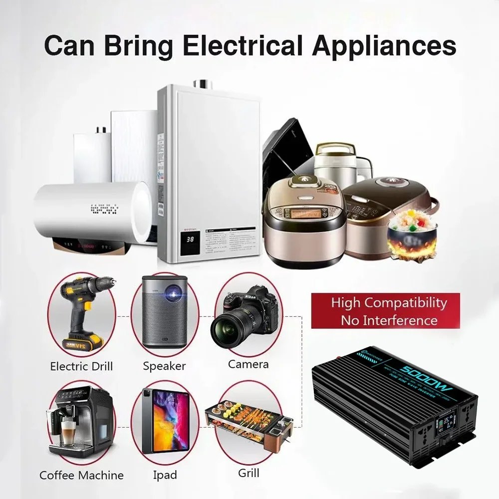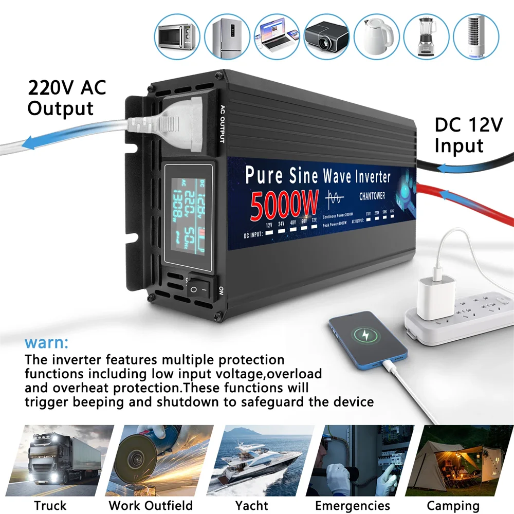 Pure Sine Wave Inverter 12V 220V 24V 110V 1000W 2000W 3000W 4000W 5000W DC To AC Portable Power Converter Car Solar Inverter