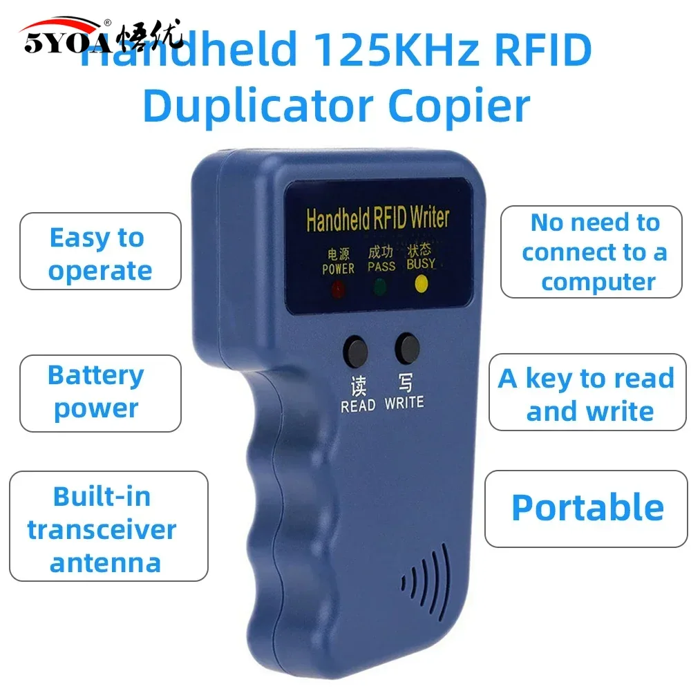 5YOA RFID ID Card Writer Copier Repetitive Handheld 125KHz EM4100 5200 Duplicator Programmer T5577 Rewritable Keyfobs Tags