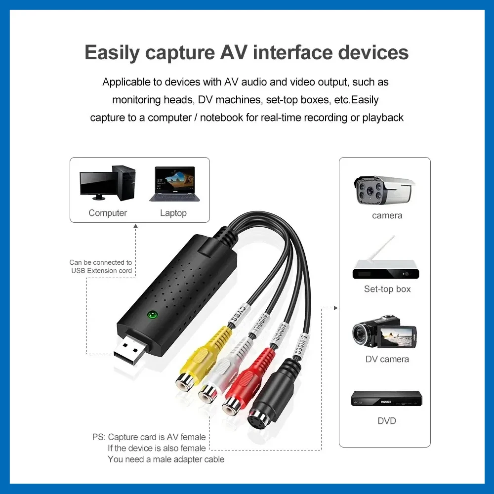 Video Audio Converter Capture Card USB 2.0 Easy Cap Video Audio Converter TV DVD VHS Audio Capture Adapter Card TV Video DVR