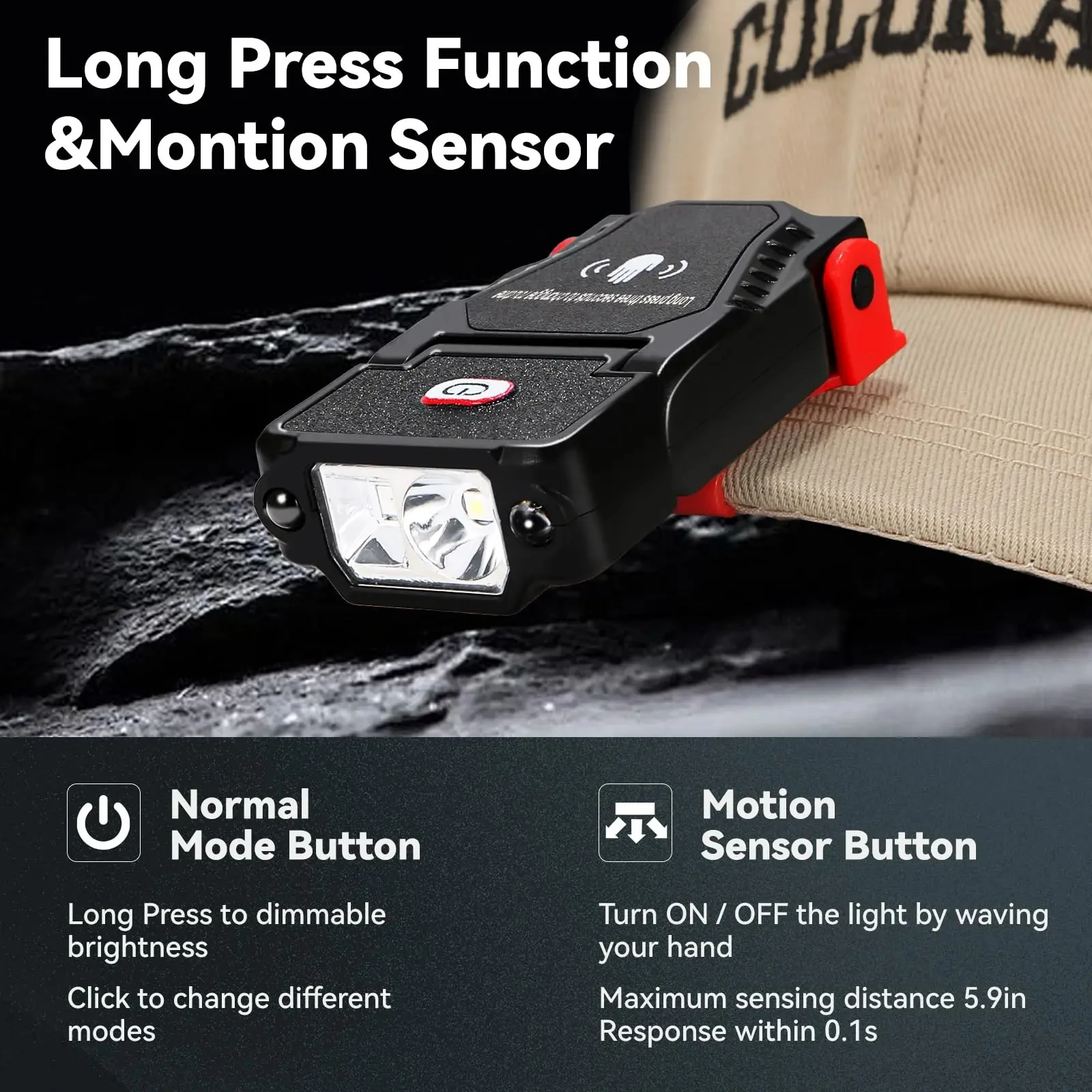 HOMEFISH Mini LED Sensor Cap Clip Headlamp USB Rechargeable Waterproof 90° Adjustable Light for Camping Fishing Hunting Outdoor