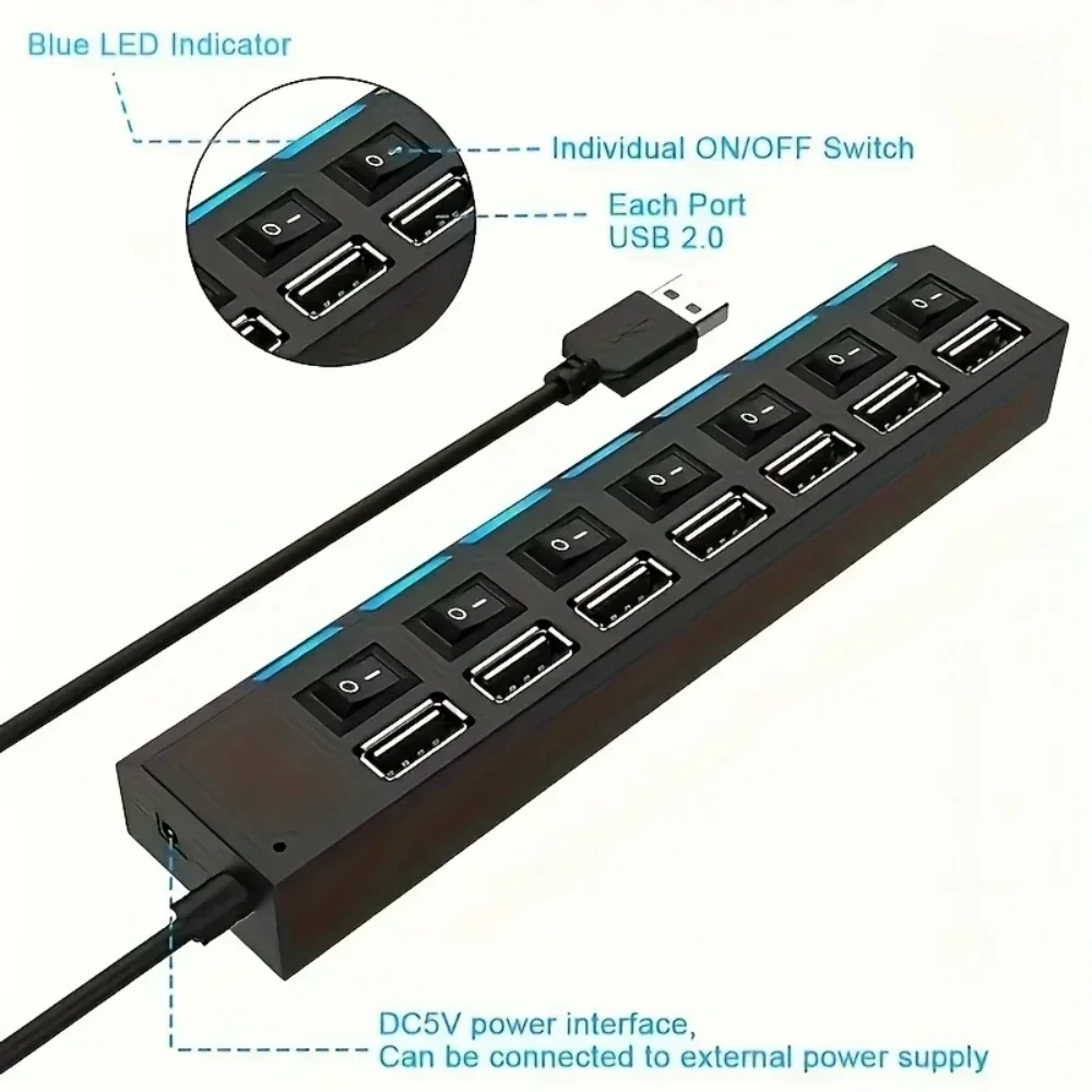 4/7 Ports LED High Speed USB 2.0 Hub 5Gbps Multi Ports USB Power Adapter Expander USB Splitter With Switch For Laptop Computer