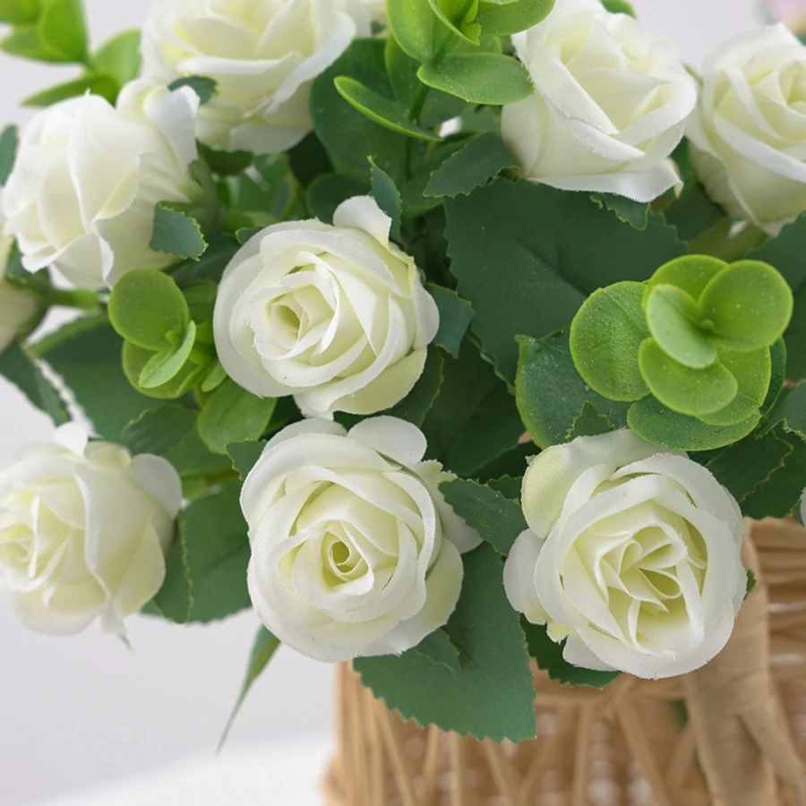 aliexpress , ali , shop , ali shop , online , prodavnica , online shop , online prodavnica , kupujem , prodajem , Artificial Flowers Vase for Home Decor Outdoor Garden Christmas Eucalyptus Leaves Fake Plants Wedding Party Silk Roses Bouquet