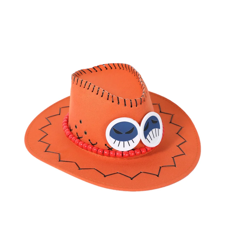 Anime Ace Cowboy Hat for Kids Halloween Costume Hats Orange Felt Cowboy Western Hat Pirates Cosplay Fashion Headwear