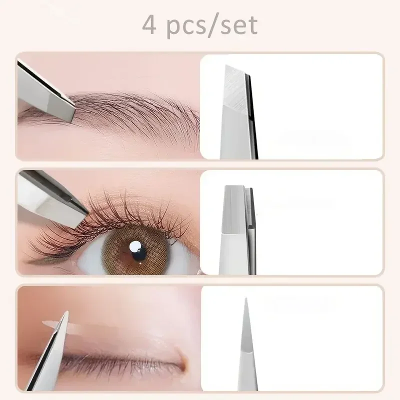 Ouriner Eyebrow Tweezers Set 4 Pcs Stainless Steel Eyebrow Forceps Professional Beauty Tool Set For Facial Hair Inward Growing