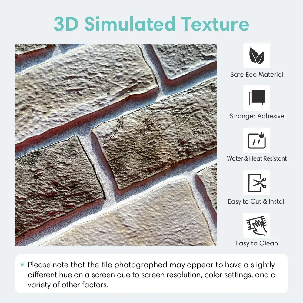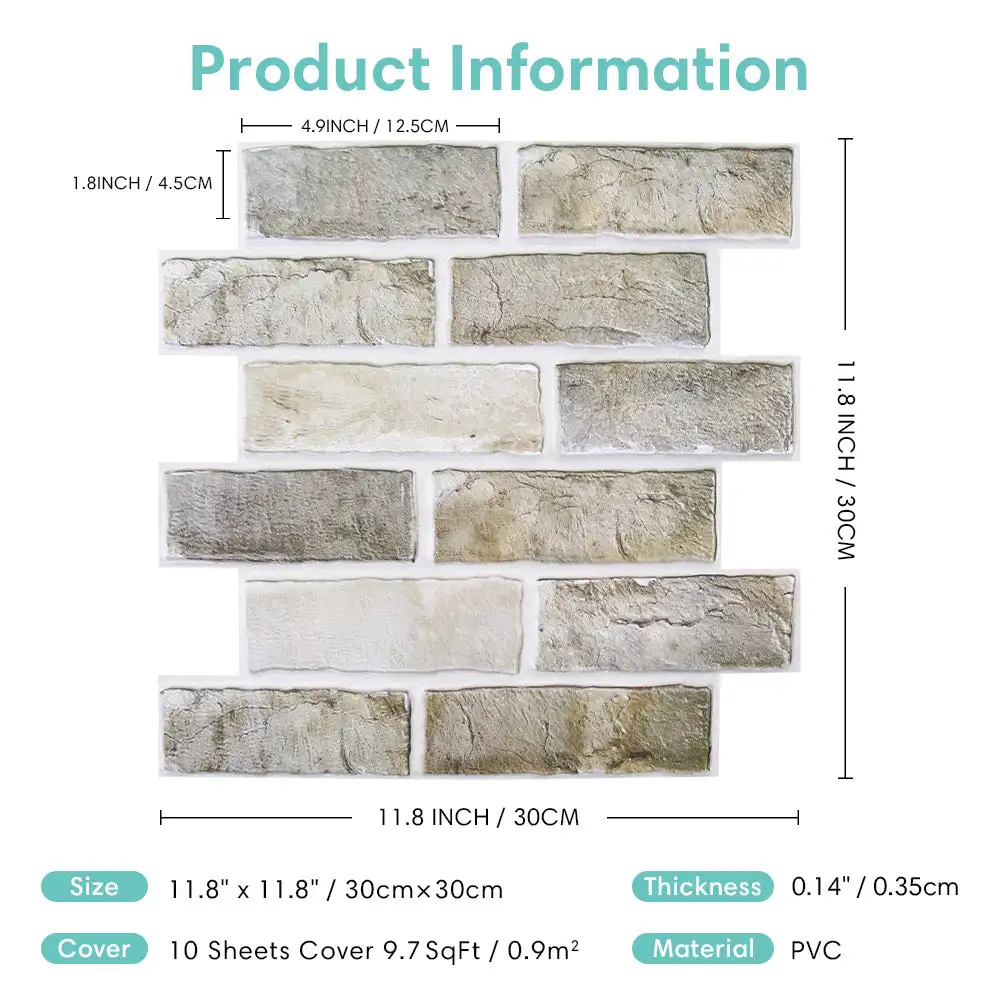 10pcs 3D Faux Brick Peel and Stick Wall Panel Farmhouse Self-adhesive Tile Sticker Mold Water Resistant 30cm X 30cm