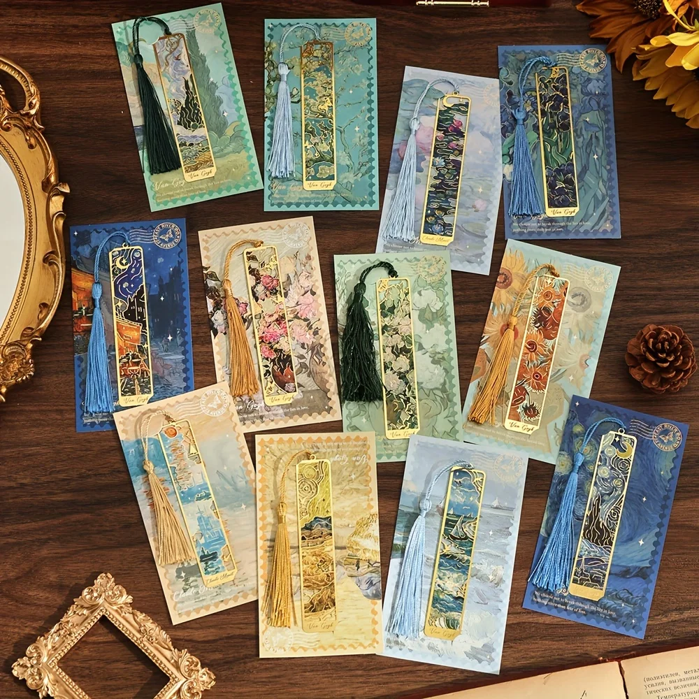 Vintage Oil Painting Metal Bookmarks - Hollow Hot Stamping Long Tassel Bookmarks - Stationery Gifts for Book Clubs, Book Lovers,