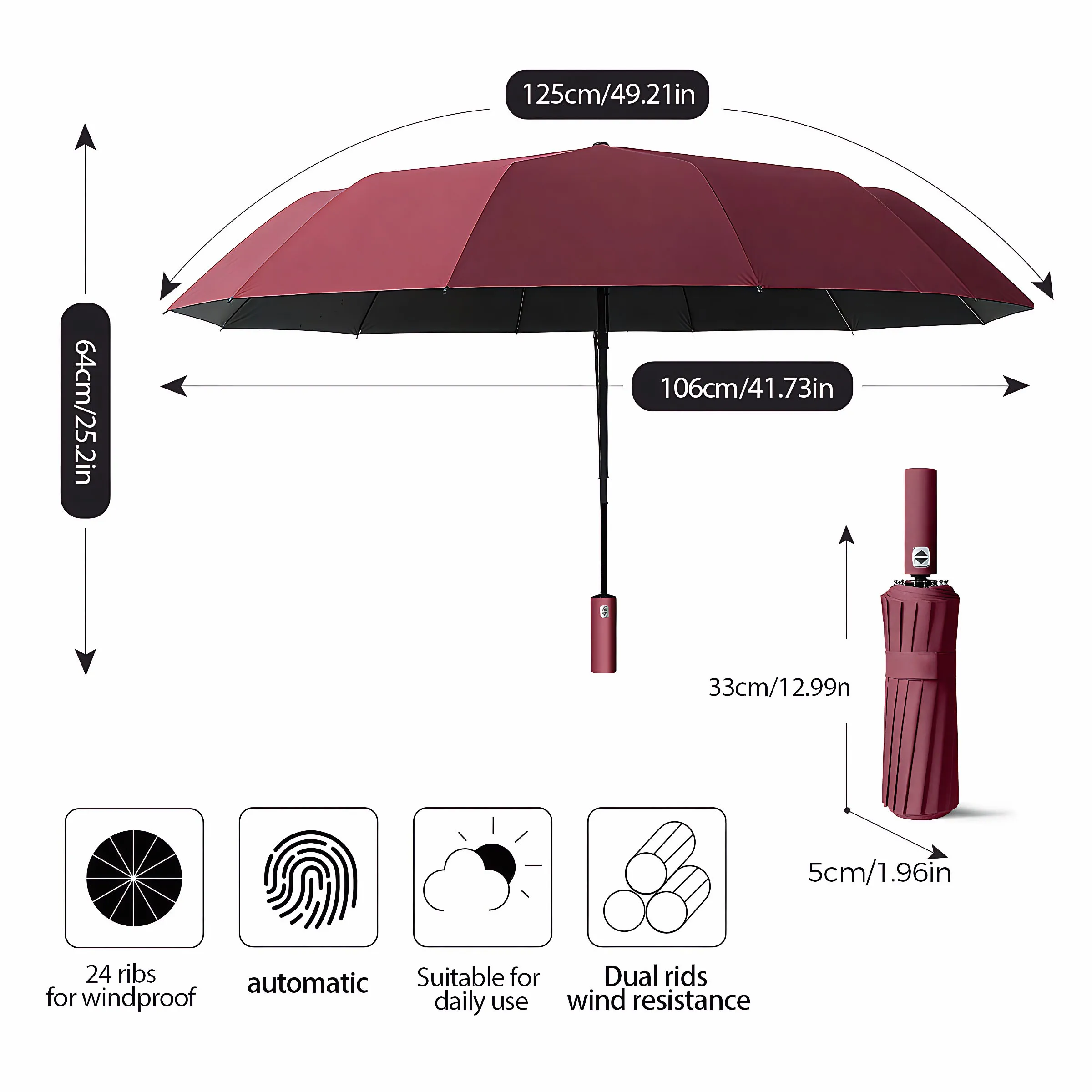 A 12 bone double bone folding automatic umbrella, enlarged umbrella face, thickened umbrella frame, fiberglass 24 bone wind