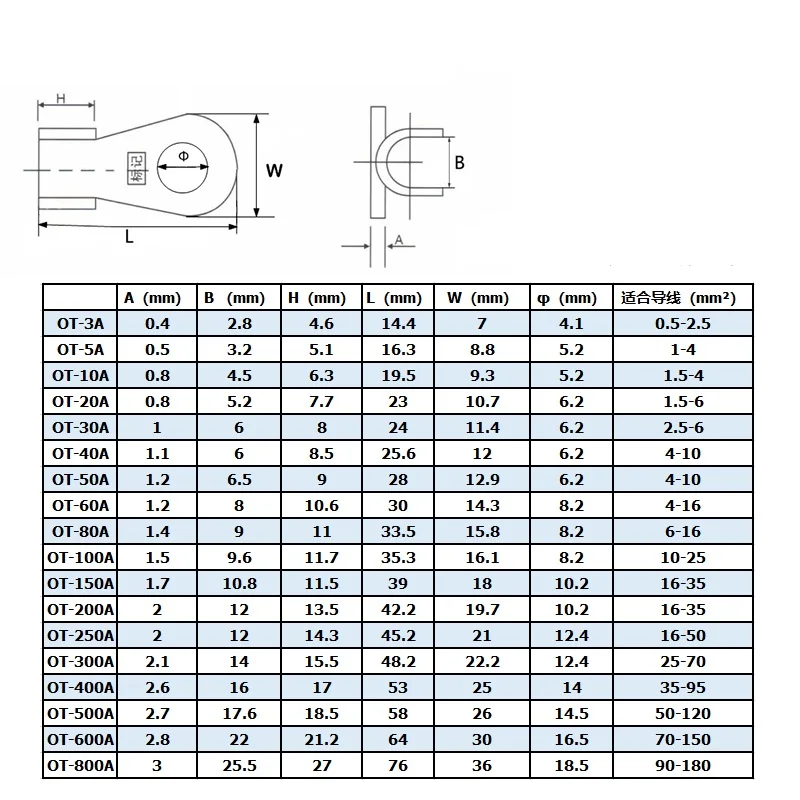 10/50PCS Copper OT Terminal Non-Insulated Wire Connector Bare Electrical Cable Terminals Lug Battery Ring Crimp Terminal 10-100A