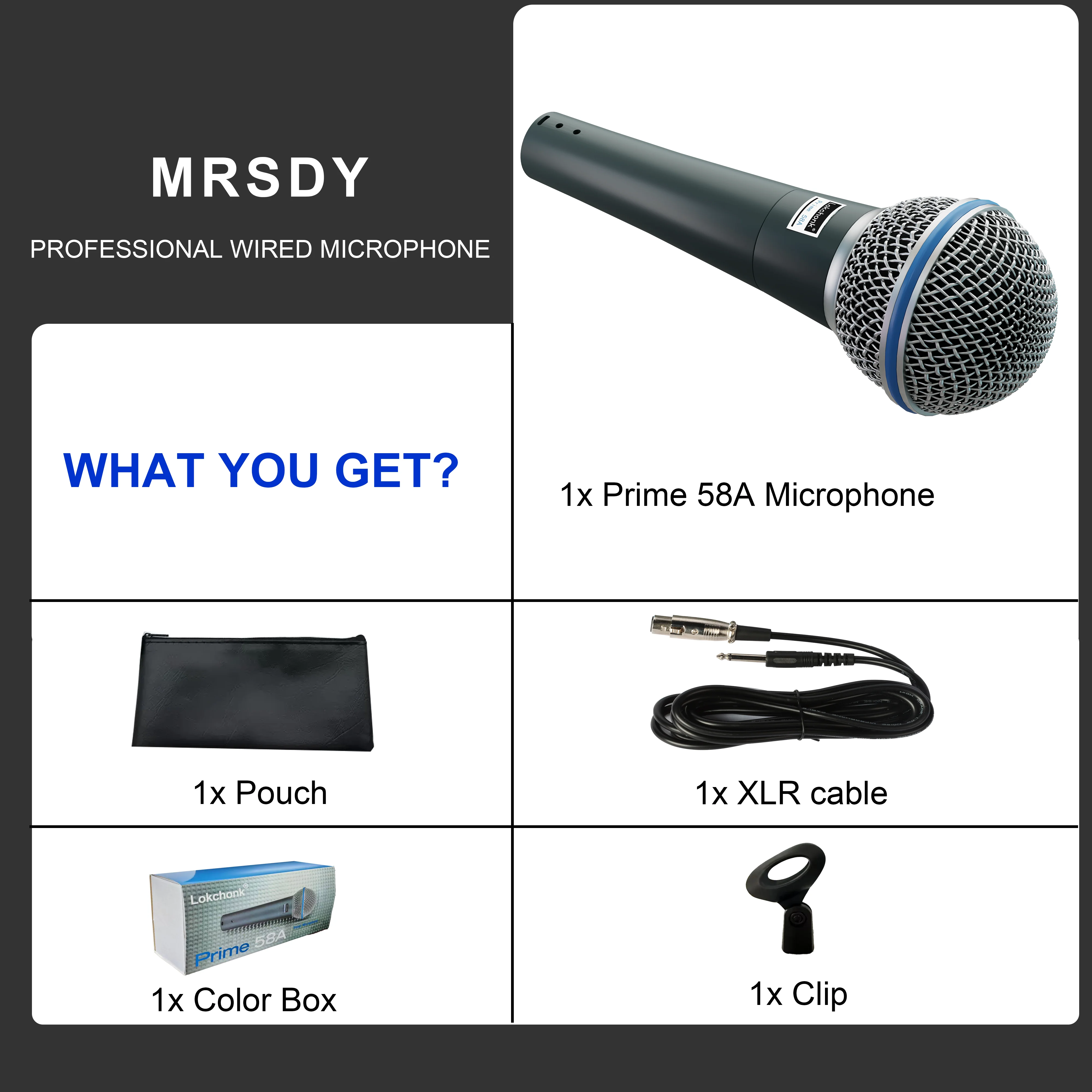 Prmie 58A Cardioid Dynamic Microphone Professional Wired Mic for Stage Singing Karaoke Podcast Studio Vocal Recording