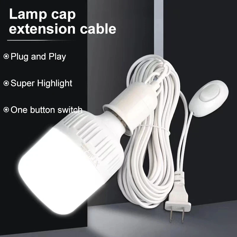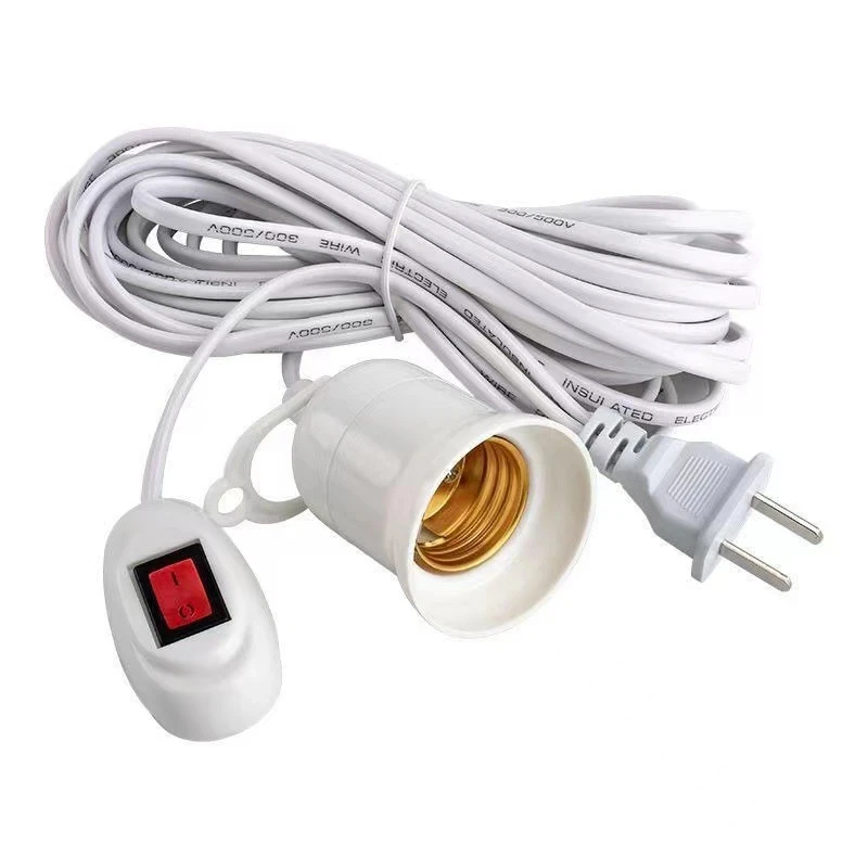 5/10m Lamp Bases Universal With Switch Led Bulb Socket Adapter E27 Screw Lamp Holder Accessories Tools Two Plugs Suspension