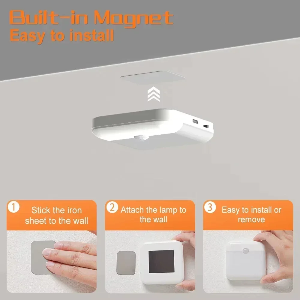 LED Induction Night Light, Wireless USB Charging Human Body Induction Wall Light Bedroom Corridor Cabinet Bathroom Night Light