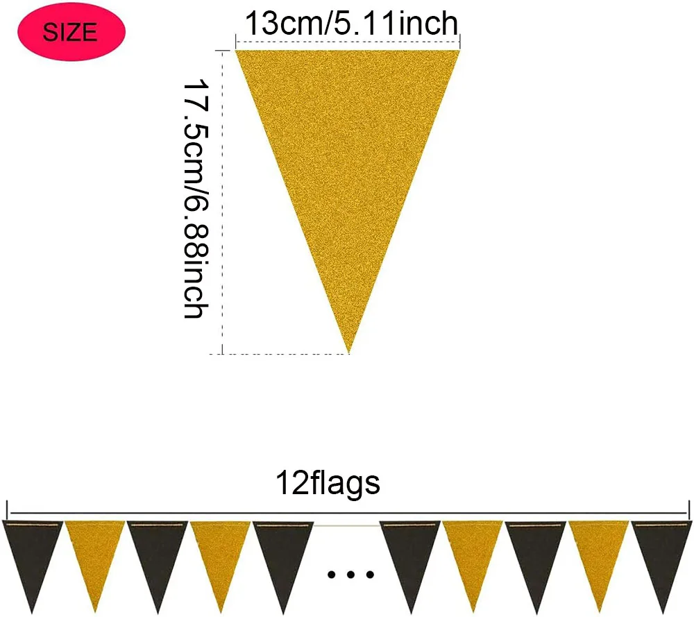 Birthday, Wedding, Graduation Party Black Gold Triangle Flag Party Background Banner Decoration