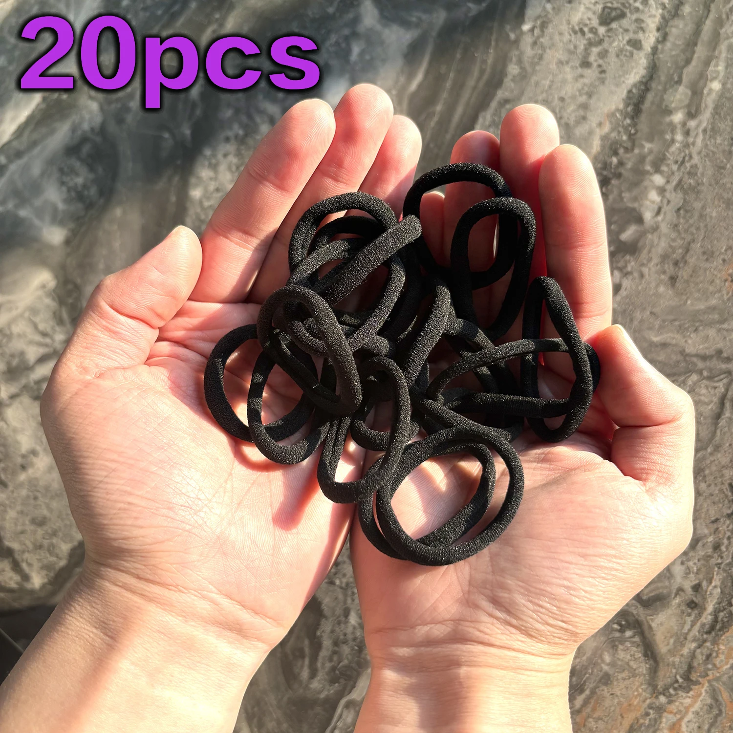 20 Pieces of Women's Black Hairbands, Seamless High-Elastic Hairbands, Non-Damaging Elastic Hairbands, Ponytail Holders, Hair Ties, Hairband Clips, Hair Accessories, Simple Solid Color Small Hair Ties, Elastic Ponytail Ropes, Simple Design, Suitable for Daily Hairstyles, Versatile Use