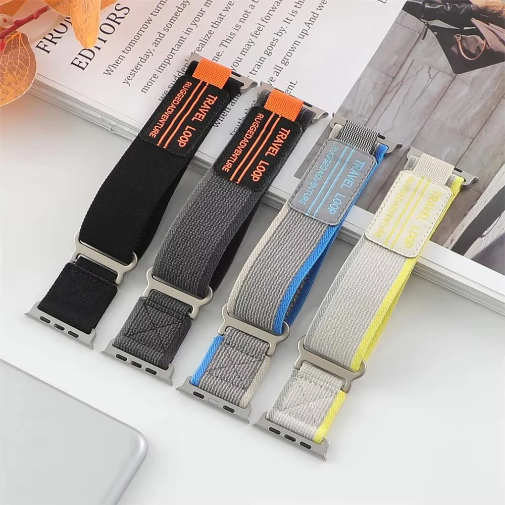 Nylon Watch Band For Apple Watch Ultra 2 Band 49mm 46mm 45mm 44mm 42mm 41mm 40mm 38mm Loop Bracelet Iwatch Series 8 7 6 SE Strap