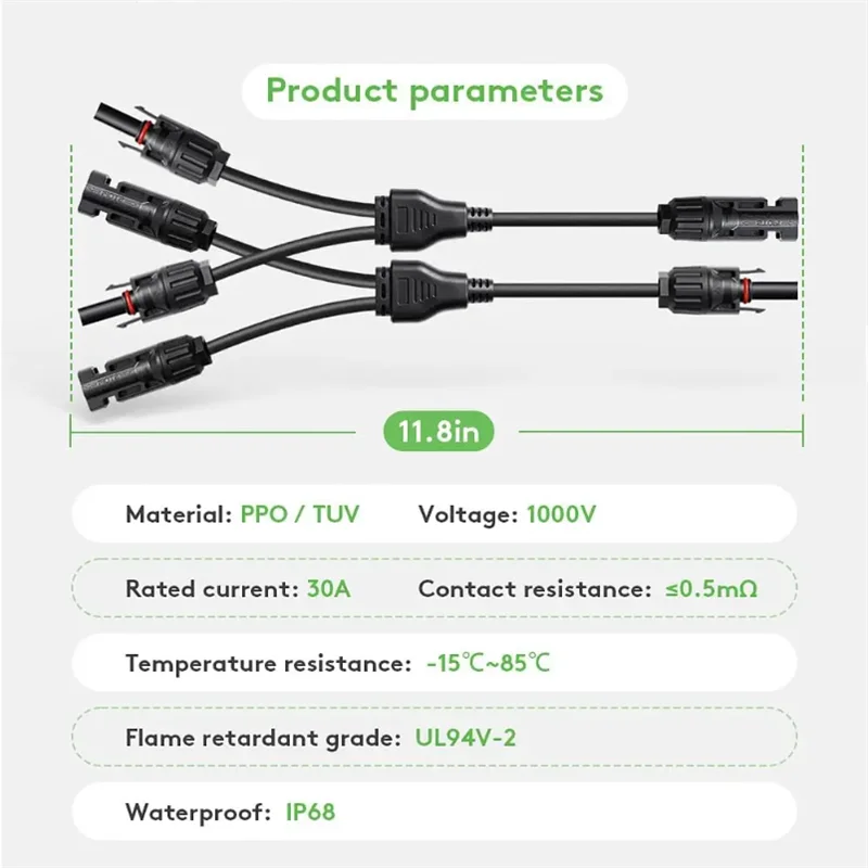 2Y Branch parallel connection 30A 1000V Electrical Solar Connector Photovoltaic 2pcs solar Panel Cable Wire Connect