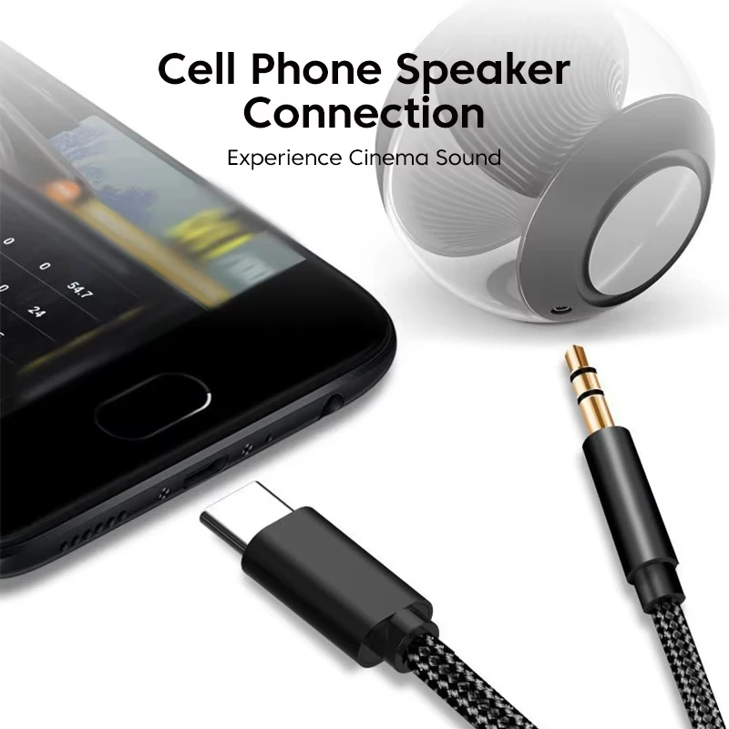 NNBILI Type C To 3.5mm Aux Audio Cable Headset Speaker Headphone Jack Adapter Car Aux for Samsung S25 Note 20 S26 Ultra Tab S7