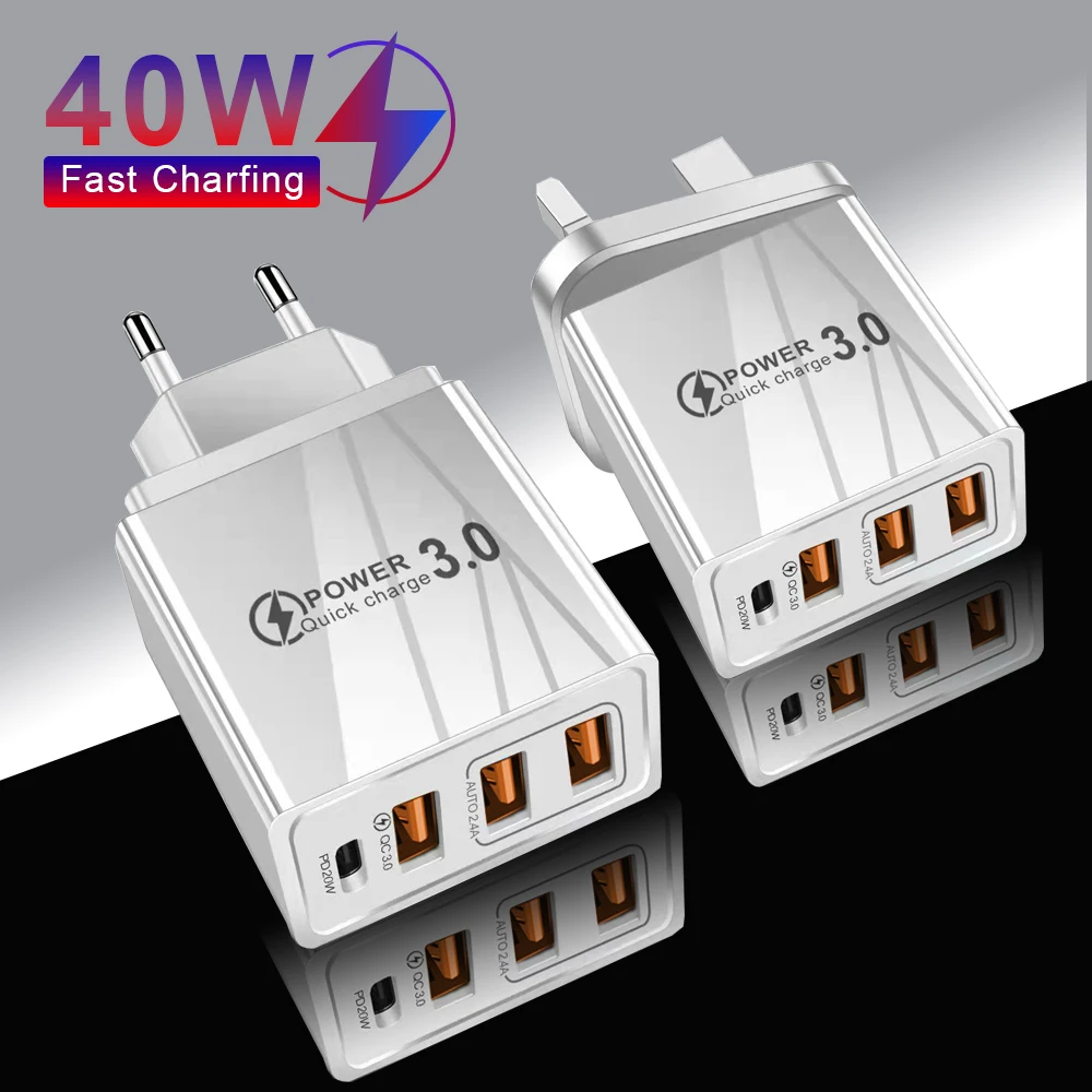 48W USB Charger QC 3.0 Type C PD Fast Charge For iPhone 12 13 Max Samsung S21 Huawei Xiaomi Mobile Phone EU/US Plug Wall Charger