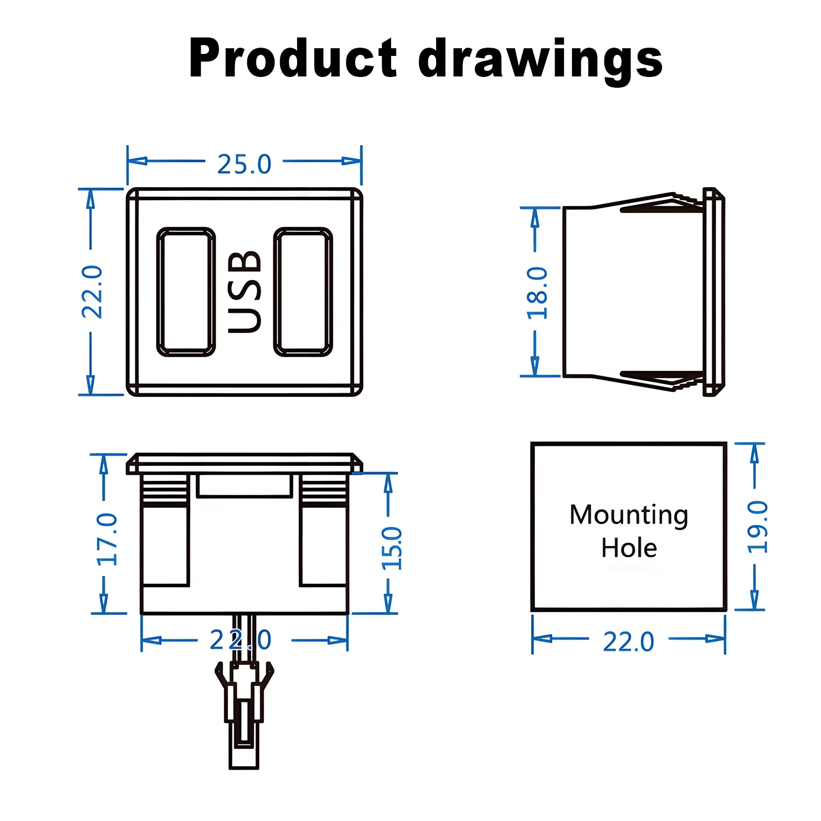 Double Layer USB Female Base Type-C Socket with Cable Connector Female USB Lamp Charging Power Socket for Electronics