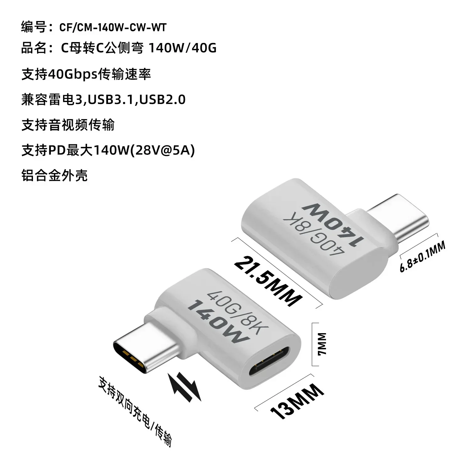 90 Degree USB C Converter Thunderbolt Type C Adapter Female to Male Right Angle Elbow USBC Earphone Audio Data Charge Extender