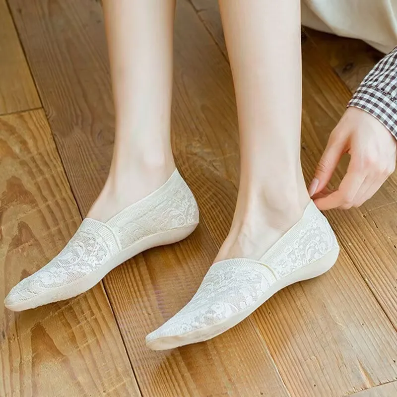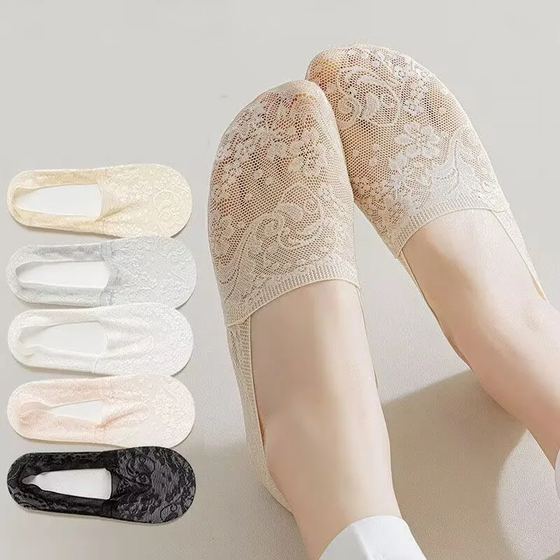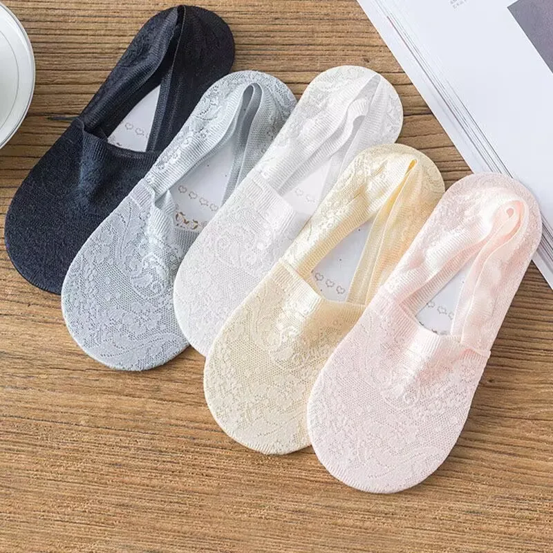 5 Pairs Fashion Women Girls Summer Socks Style Lace Flower Short Sock Antiskid Invisible Ankle Socks New