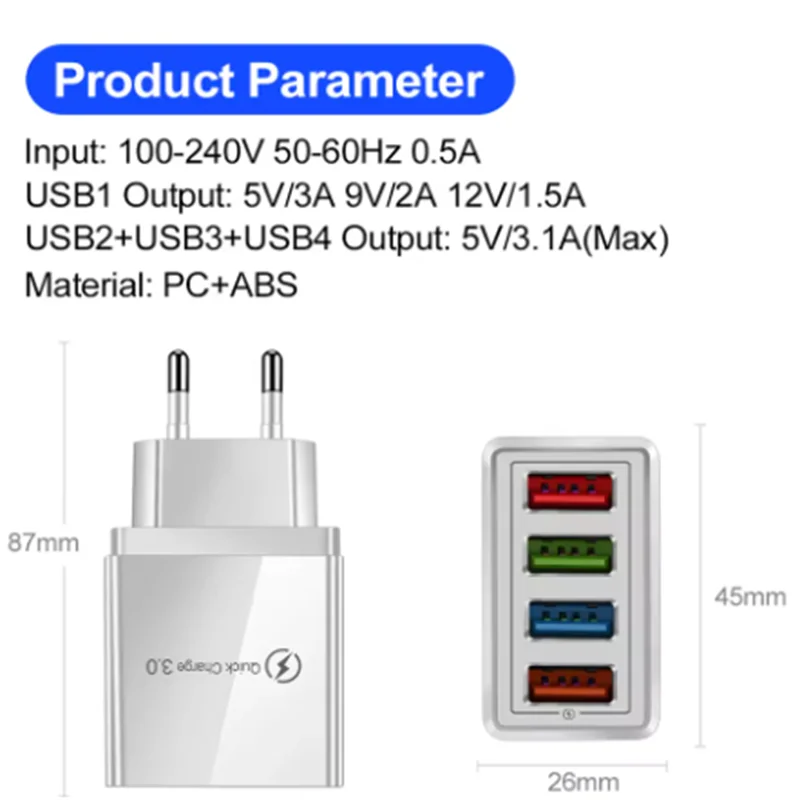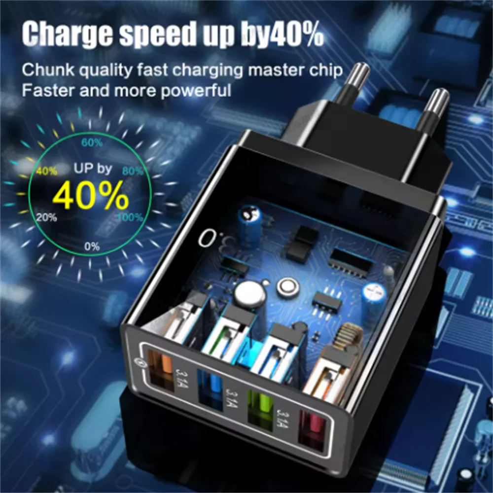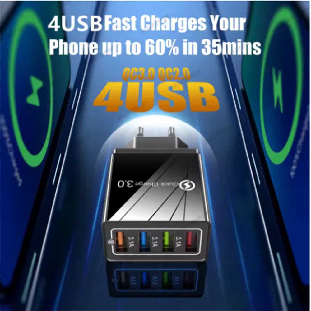 4 Ports USB Quick Charger EU Plug Phones Charger USB C Wall Charger Adapter For iPhone Huawei Samsung Xiaomi POCO Oneplus Realme