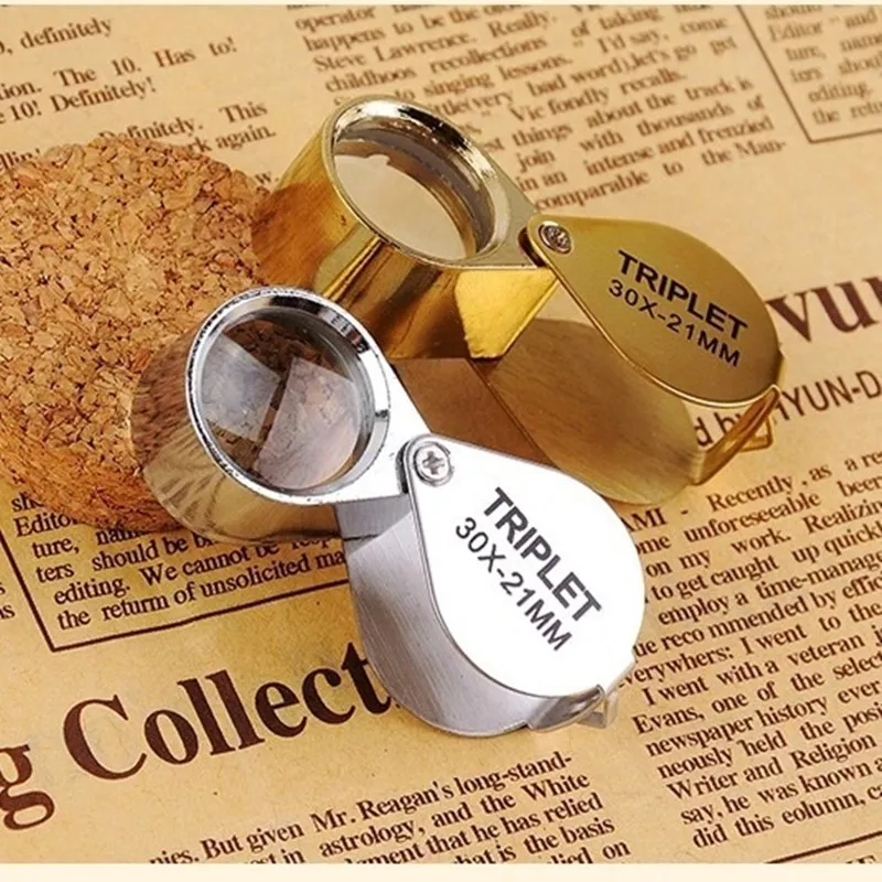 30X Metal Jewelry Magnifying Glass Jewelers Eye Tool Jewellery Folding Loupe Glass Lens Magnifying Triplet Glass Jewelry Diamond