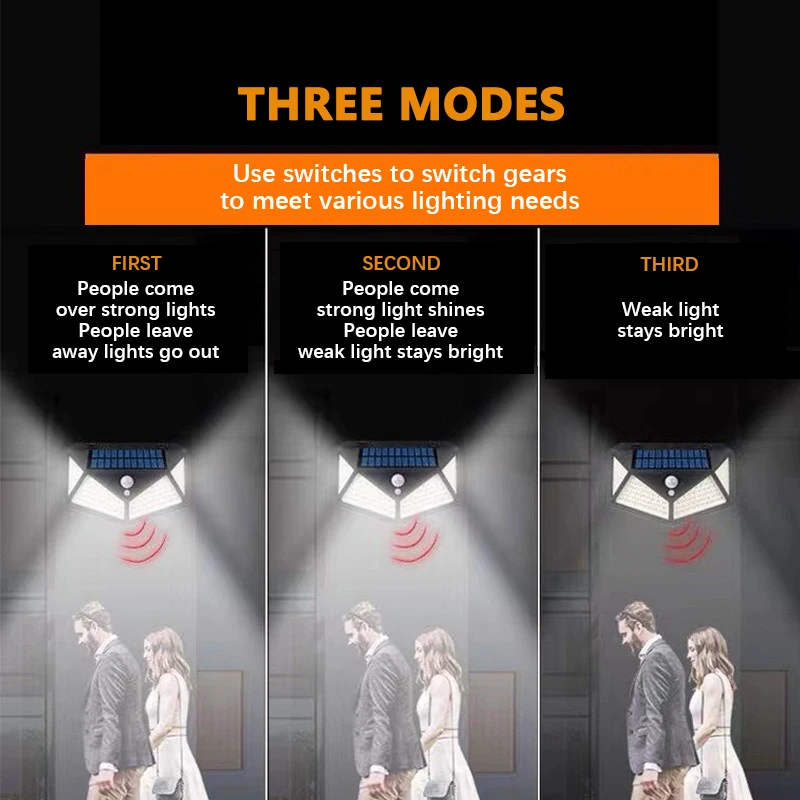 Outdoor Solar Lamp100 LED Solar Wall Lights Waterproof Motion Sensor Solar Powered Sunlight Street Light for Garden Decoration