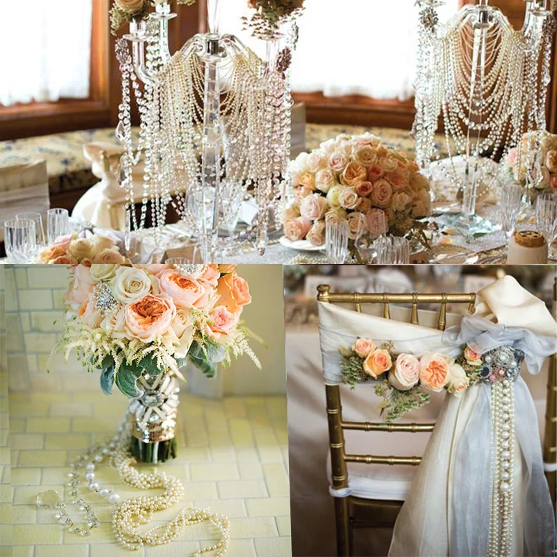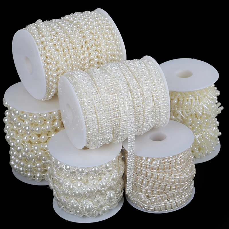 2-10 Meters 3-10mm Fishing Line Artificial Imitation Pearl Round Beads Chain For Wedding Bridal Bouquet Flower Decoration