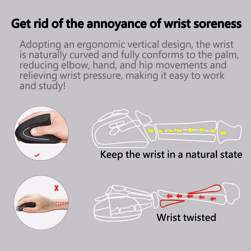 Warvank FK10 Vertical Mouse Ergonomic 2.4GHz Wireless Mice 3 Adjustable DPI 800/1200/1600 6 Buttons for Laptop Desktop Computer