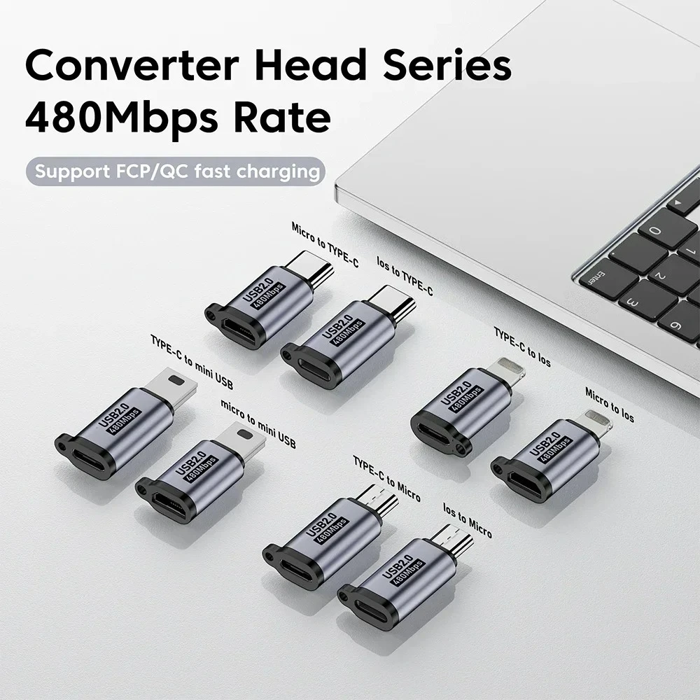 Micro USB To Type C Adapter Mini USB To USB C 480Mbps Fast Data Charging Connector USBC To Lightning Adapter for Iphone