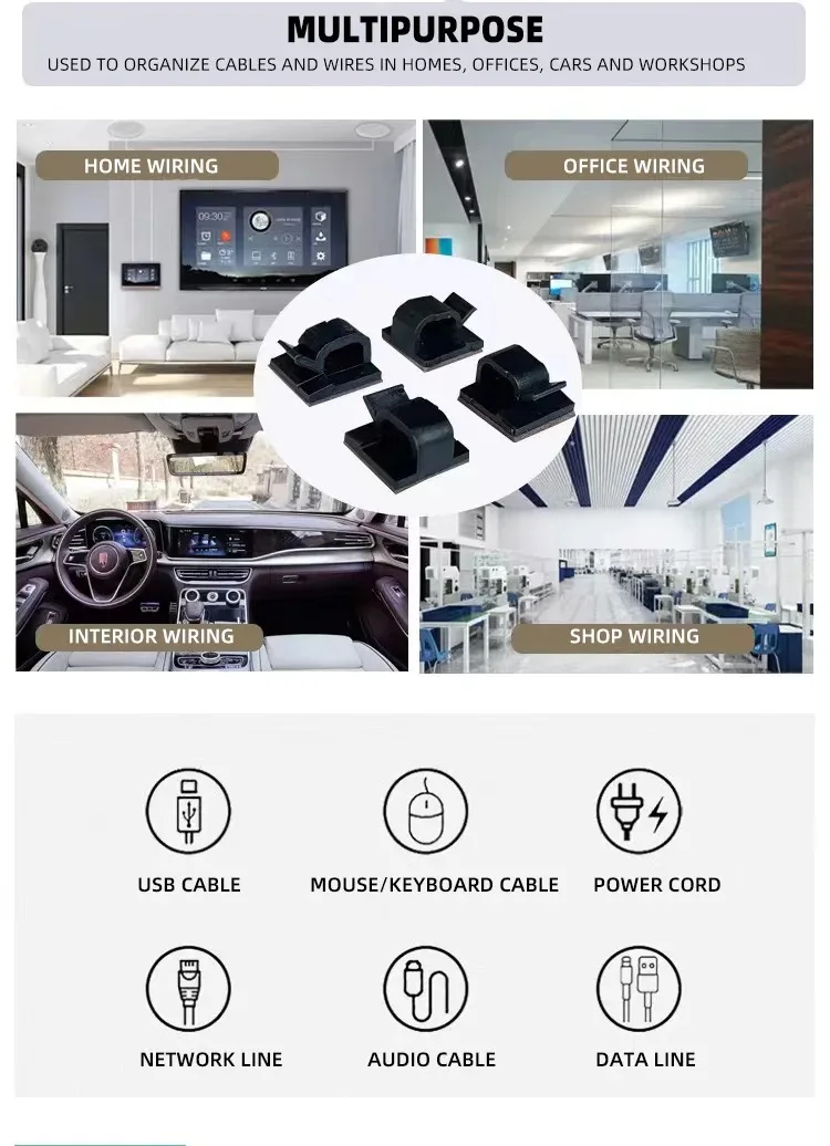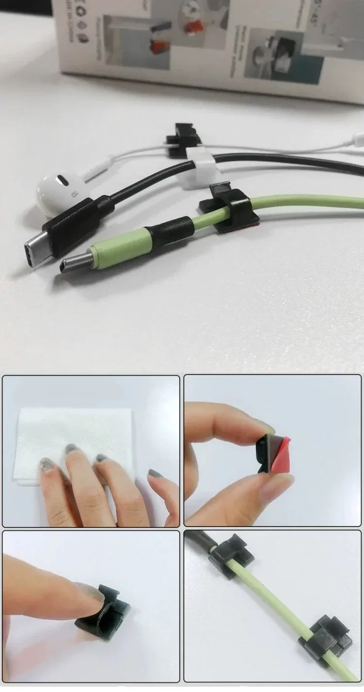 R-Type Self-Viscous Cable Fixed Clip Data Line Storage Car Desktop Office Cable Fixed Device Multifunctional Cable Wire 20-40pcs