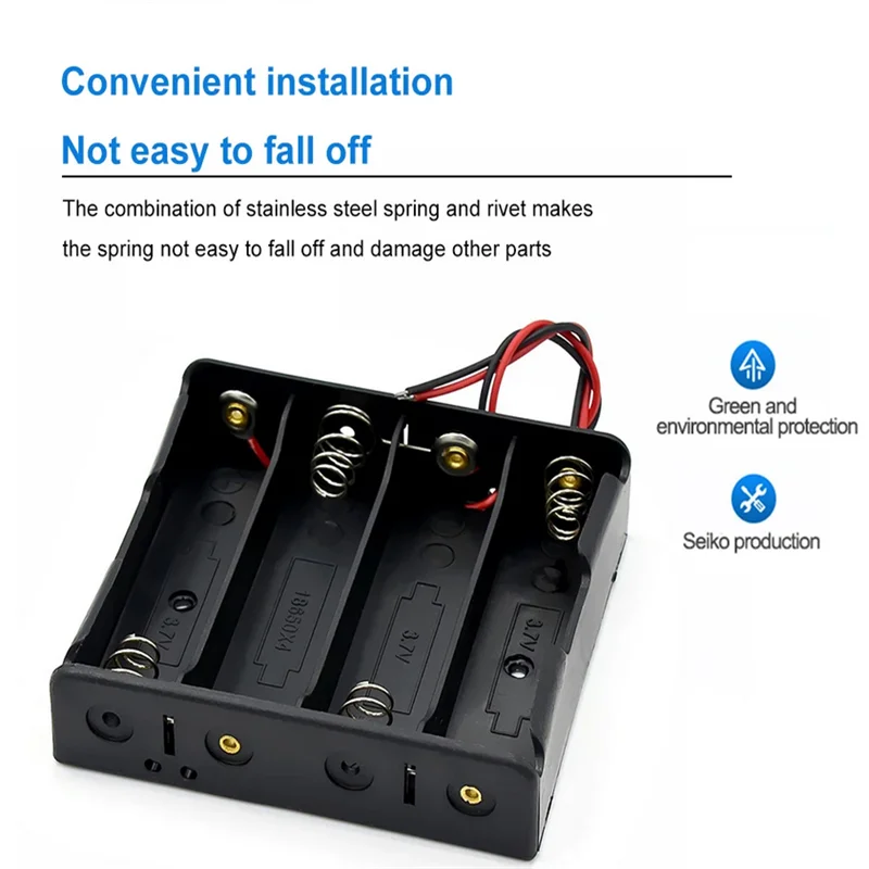 Black Plastic DIY Battery Storage Case Clip Holder Container 1X 2X 3X 4X 18650 Battery Storage Box Case Wire Lead Pin
