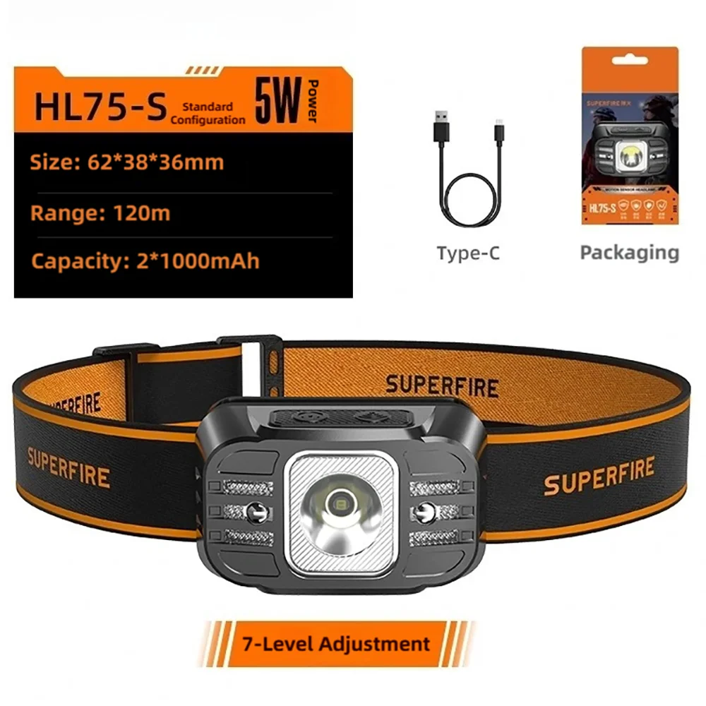 TINSOL Mini Powerful Hiking Camping Headlamp USB C Rechargeable Head Light LED Sensor Headlight Front Head Lamp For Working