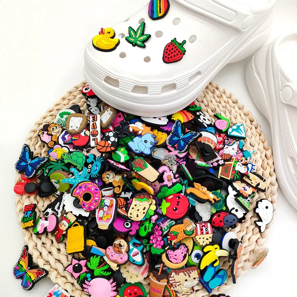 6/30/60/100/200 Pcs Cartoon Shoe Charms for Clogs Bubble Slides Sandals PVC Shoe Decorations Accessories For Teens