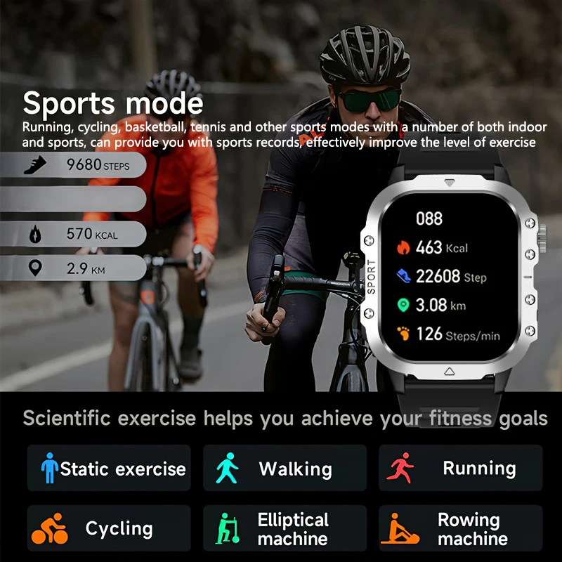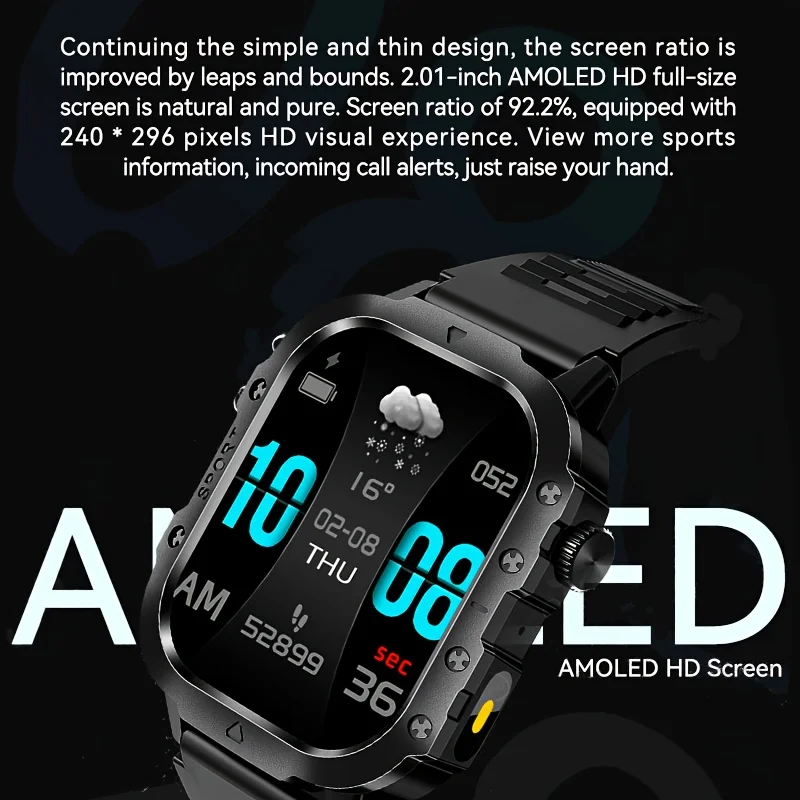 LAXASFIT Outdoor Sports Smart Watch 2.01-inch HD Screen LED Flashlight Bluetooth Voice Call Smartwatch 2025 New