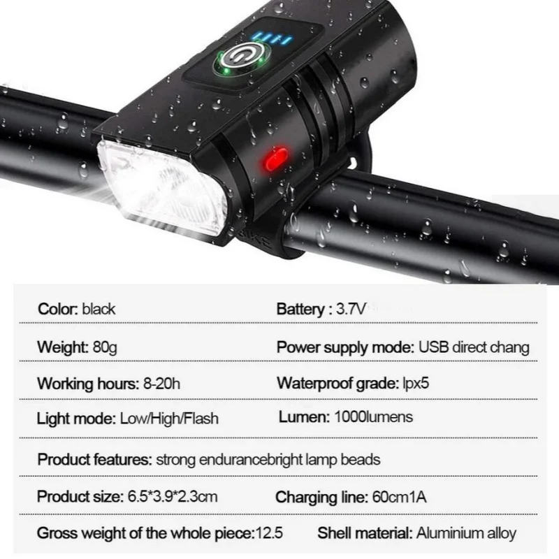 Bike Light USB Rechargeable T6 LED Bicycle Lights 6 Modes MTB Flashlight Bicycle Headlight for Cycling Bicycle Front Lamp