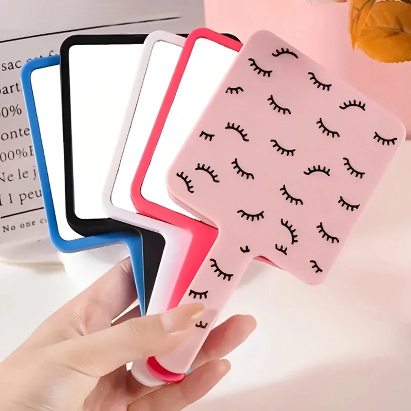 2pc Handheld Makeup Mirror Eyelash Extensio Mirrors Square Mirror With Handle Portable for Makeup Application Travel Beauty Tool