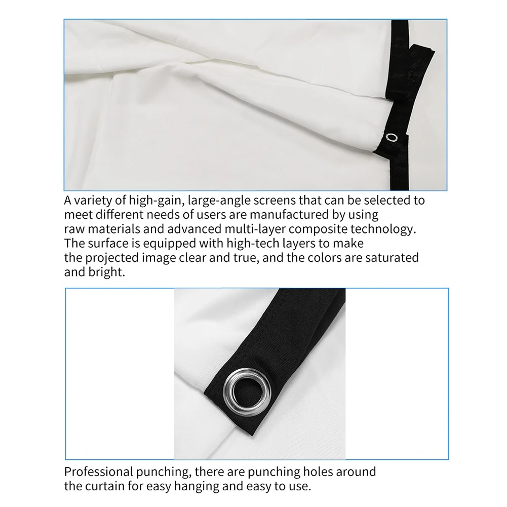 60/72/84/100/120/150 Inch Projector Screen 16:9 Home Cinema Theater Movie High Density Outdoor Camp Portable Projector Screen