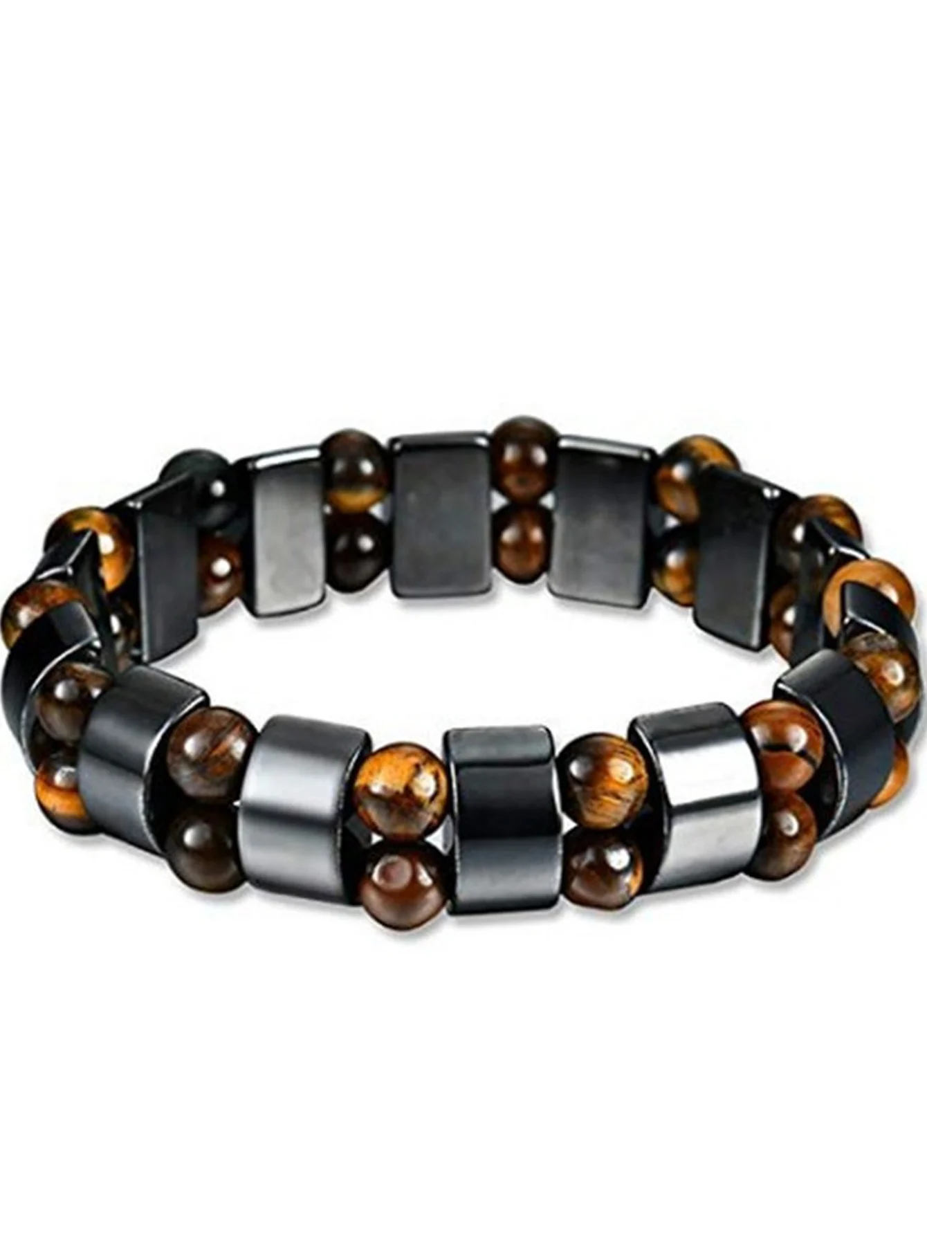 1PC Fashionable Black Gallstone Elastic Adjustable Health Energy Magnetic Therapy Hematite Bracelet for Men and Women