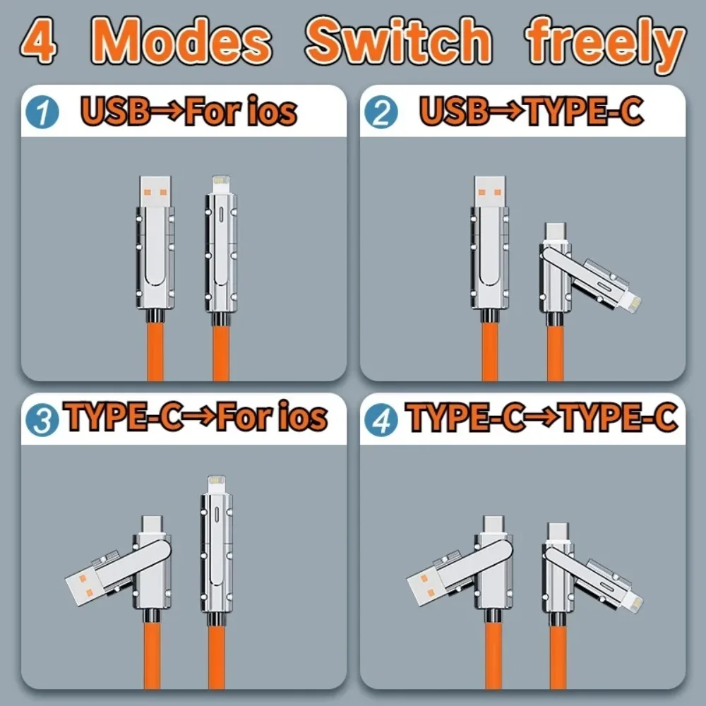 4 in 1 100W Fast Charging USB & Type C To USB C / Lighting Cable for iPhone 15 14 13 Pro Max Huawei Xiaomi PD Mobile Phone Cable