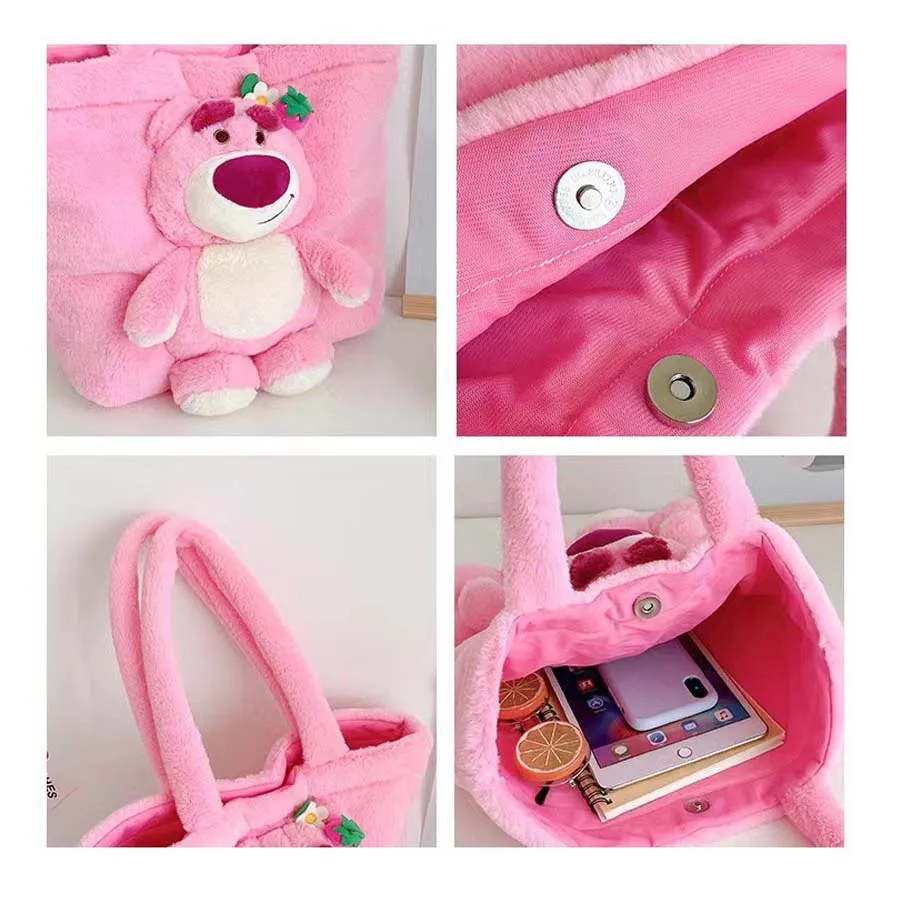 aliexpress , ali , shop , ali shop , online , prodavnica , online shop , online prodavnica , kupujem , prodajem , Disney 2024 New Cartoon Plush Doll Shoulder Bag Sweet and Cute Stitch Strawberry Bear Soft Cute Girls Handbag
