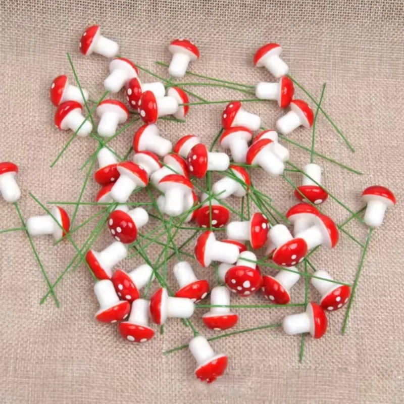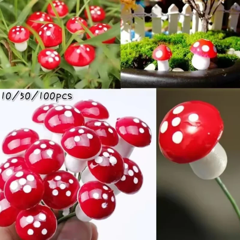 100/50/10pcs Mini Mushroom Miniatures Fairy Garden Moss Terrarium Resin Crafts Decorations Artificial Stakes Craft