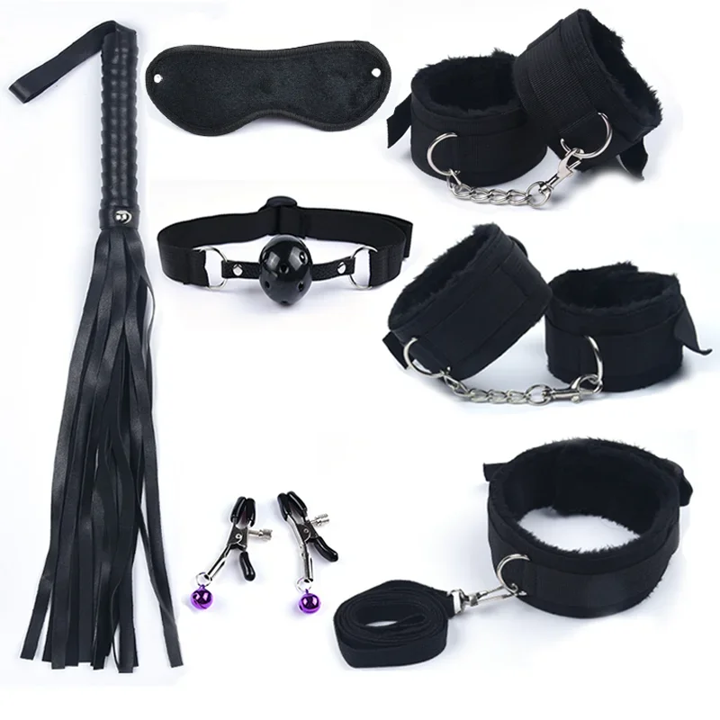 Toys For Women s Games Nylon Bondage BDSM Kits Handcuffs Whip Mouth Gag Rabbit Tail Anal Plug