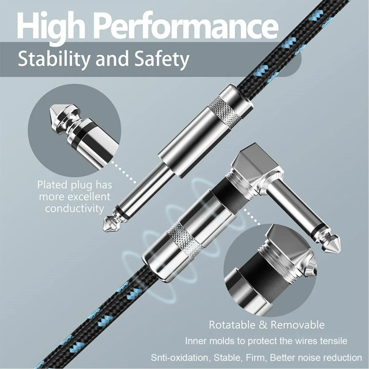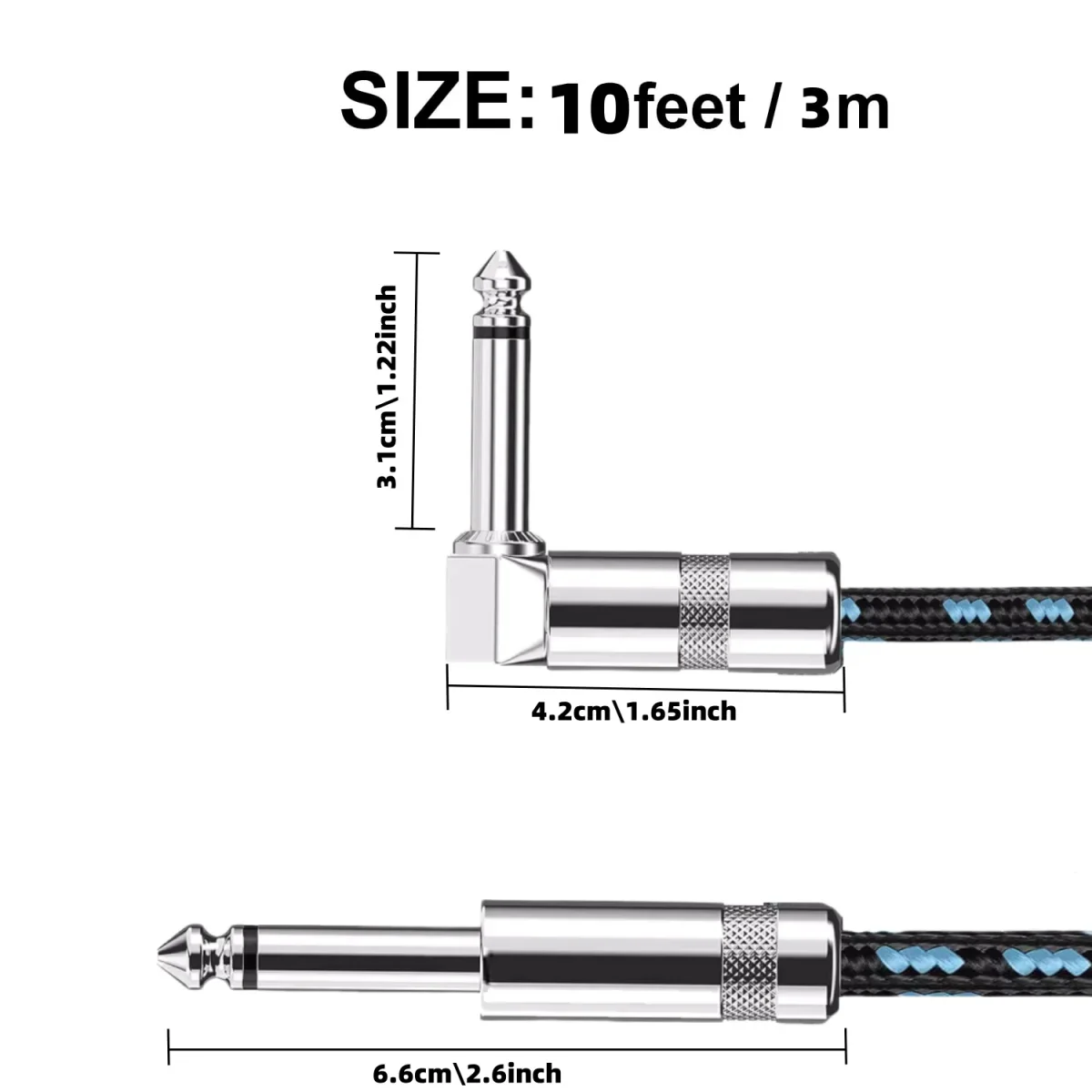 Electric Guitar Cable Braided 1/4 ft Jack 90 Degree TS 6.5mm Audio Mono Cable Bass Electric Box Audio Cable Noise Reduction Cabl