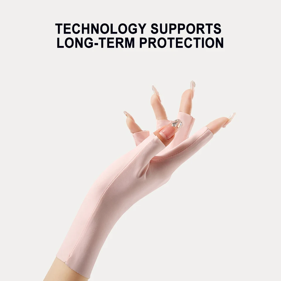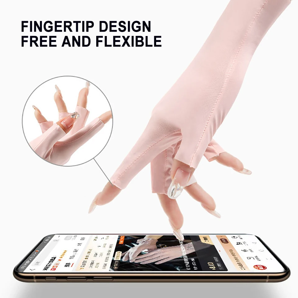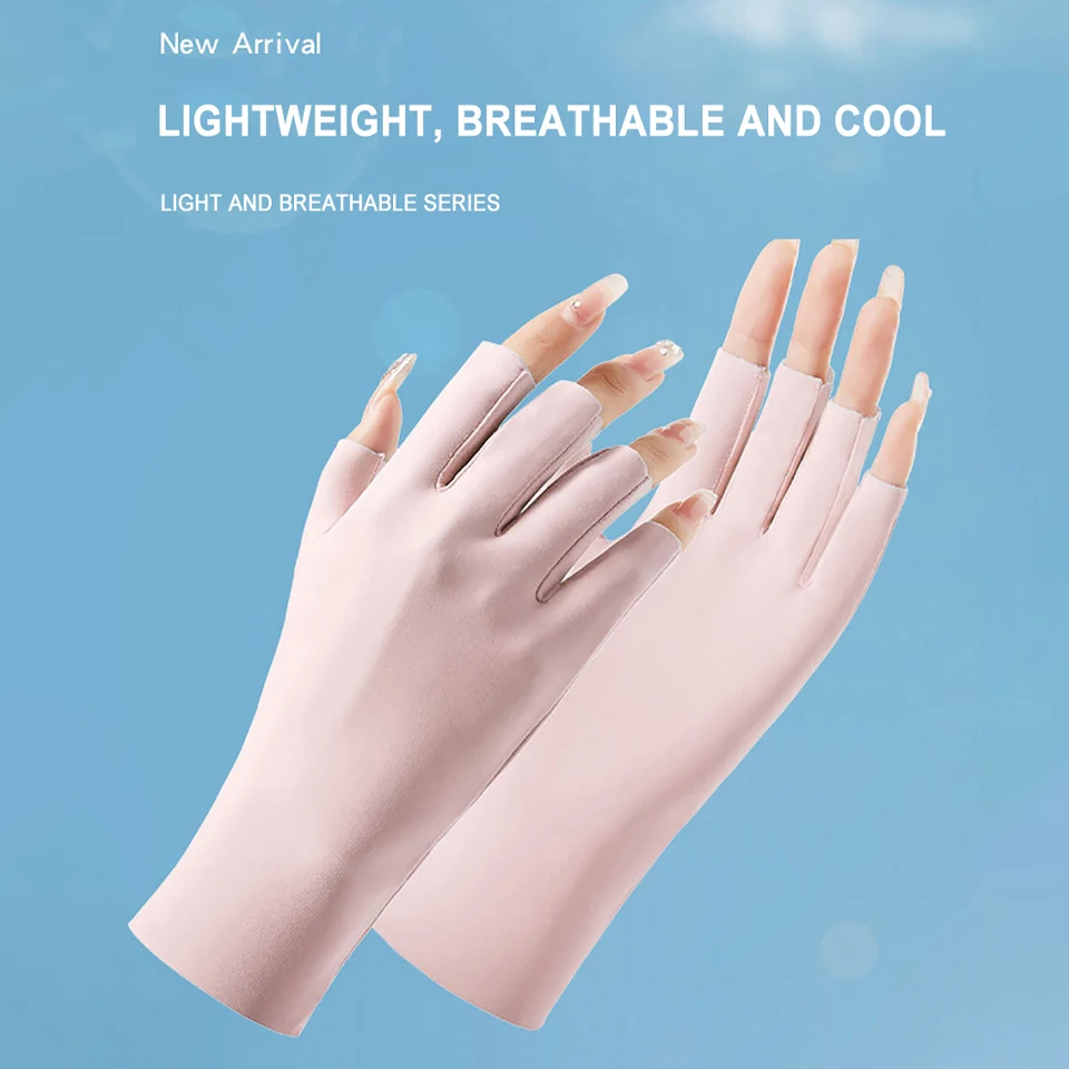 NOFOXO 1 Pair Women UV Protection Multicolor Gloves Half Finger Thin Cooling Ice Silk Breathable Driving Summer Sunscreen