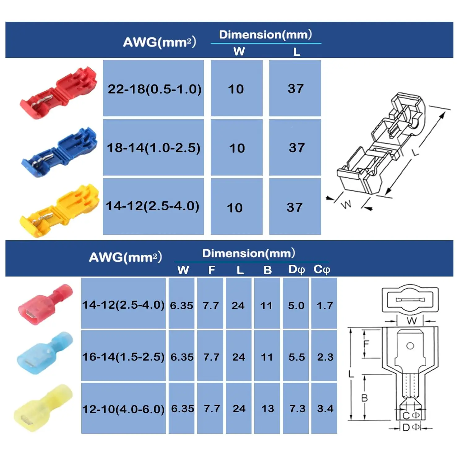 40Pcs(20Set) T Shape Electrical Cable Connector Quick Splice Lock Wire Terminal Crimp Electric Wire Connectors