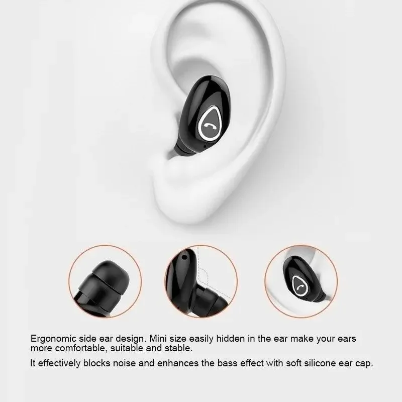 Mini Invisible Earphones Bluetooth 5.0 Wireless Headphones Hands Free Sports In-Ear Earbuds HiFi Music Gaming Headset with Mic